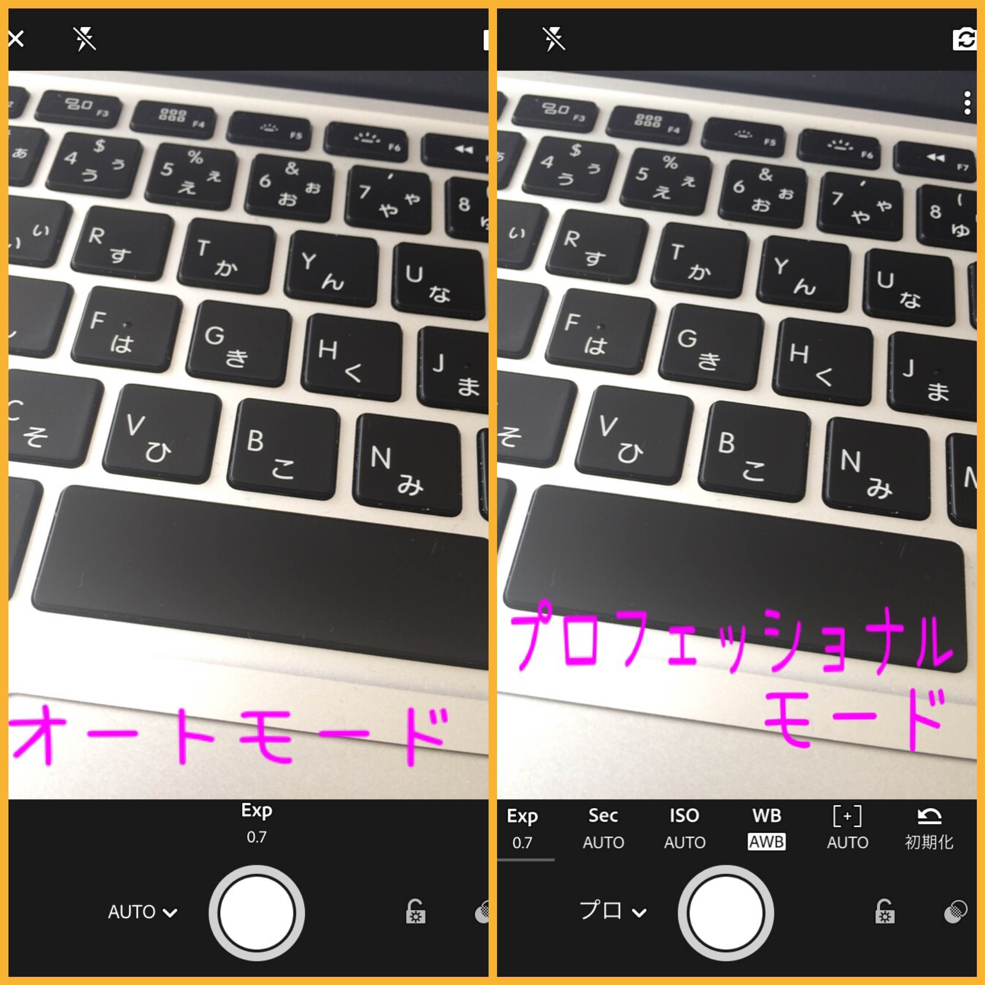 カメラモードでは「オートモード」、「プロフェッショナルモード」の2つの撮影方法を切り替えられます。