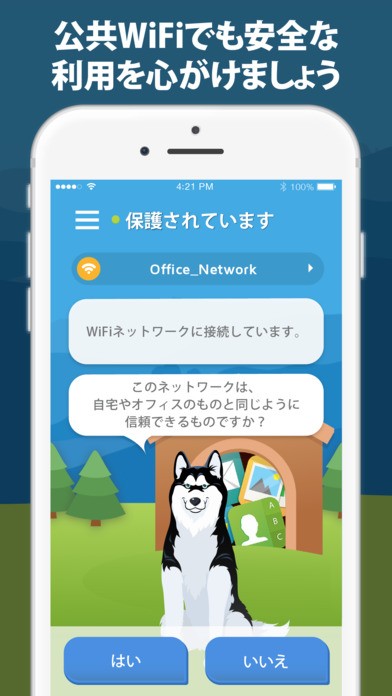 そんなときこそ、このアプリが役に立ちます。「このネットワークは信頼できるものですか?」と安全性を確認してくれるので、公共WiFiでも安全な利用を心掛けることができます。