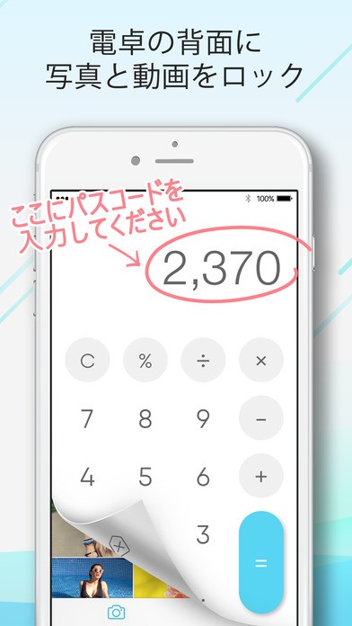 このアプリは「誰にも見られたくない写真を隠しておける写真フォルダー」になっています。アプリの外観はどう考えてもただの「電卓」で、誰も不審に思うことはありません。下手したら自分も電卓を開こうとこのアプリを開いてしまうかもしれないほどです← そしてその電卓の意味するところは「アルバムを開くためのパスワードを入力する場所」なのです。自分が設定したいパスワードを入力した後、「%」を入力すると、それはもう電卓ではなく、秘密のアルバムの入り口になるのです。すごい神秘的な、ハリーポッターの世界のような感覚ですが、すごく面白いアプリですよね。もう知っている方からすれば、「パスワードは何か」という感じになってしまいますが、傍から見ればもう変人でしかありませんよね。 しかもこのアプリ、だいたい写真アプリと言うと保存するのに上限があったりするものなのですが、無料で無制限の容量を提供してくれています! そんな秘密のアルバムにどんな写真を皆さんは保存するのか楽しみなんですが、ここは想像にとどめておきたいと思います。
