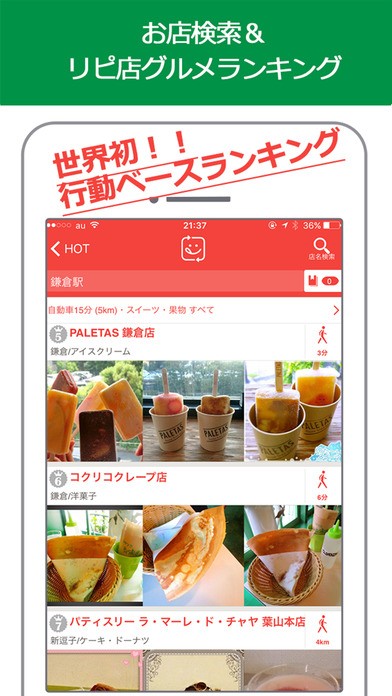 ※「人気のお店検索・リピ店グルメランキング」・・自分の位置情報をアプリに許可すると近所にある人気のお店情報が表示されます。近所だけではなく、もっとお店を調べたい人は