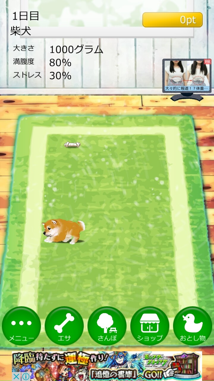 癒しの子犬育成ゲーム柴犬編ゲームアプリでやらなくてはならないことは、えさやりとさんぽです。