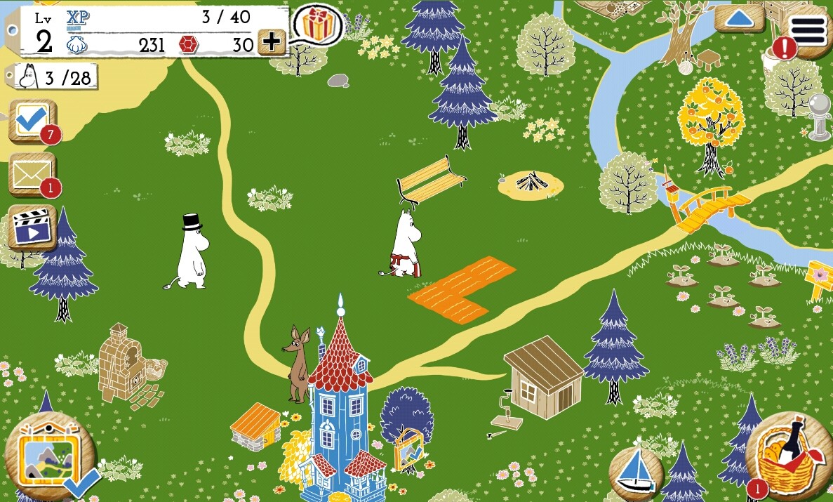 レベルアップすると村を拡張したり、新しい機能が利用できるようになったりと、よりムーミン谷の生活を楽しめるようになります。