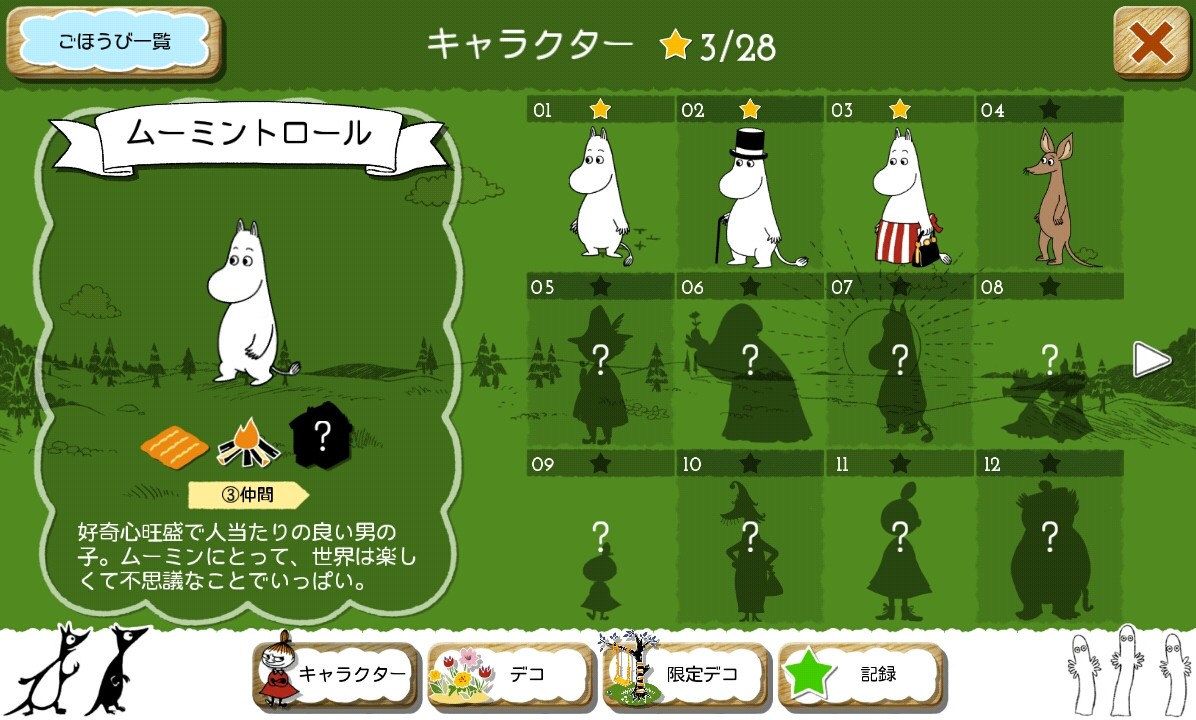 ムーミンのゲームアプリを起動すると下のような画面が表示されます。