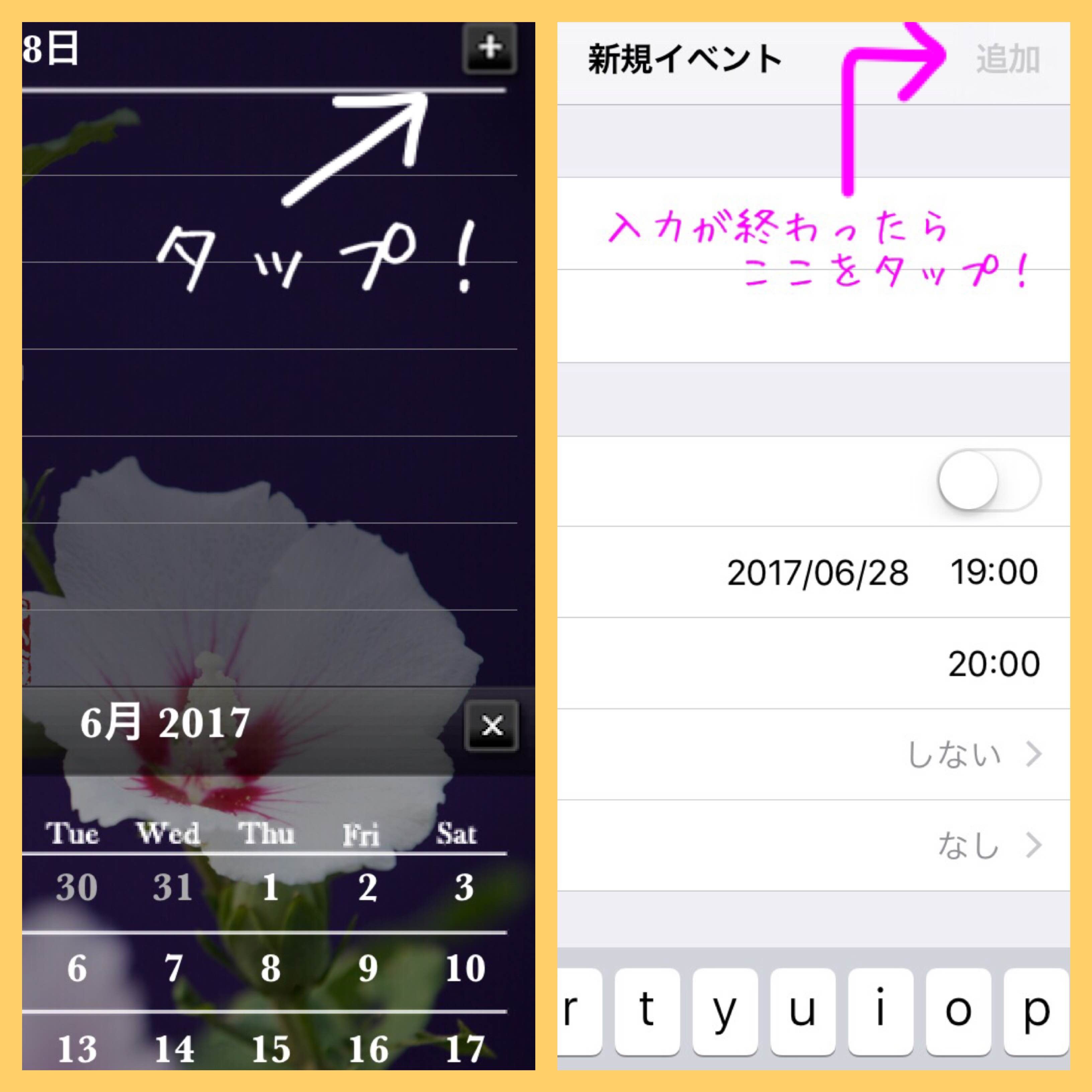 カレンダーに予定を入れるには、予定を入れたい日にちをタップします。