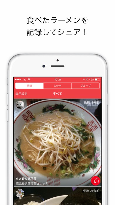 ありきたりの口コミではなく、ラーメンにうるさい人達が通いたいお店を知りたいならアプリの「ランキング」から、ラーメン好き同士で自分が食べたラーメンの写真を投稿したいなら