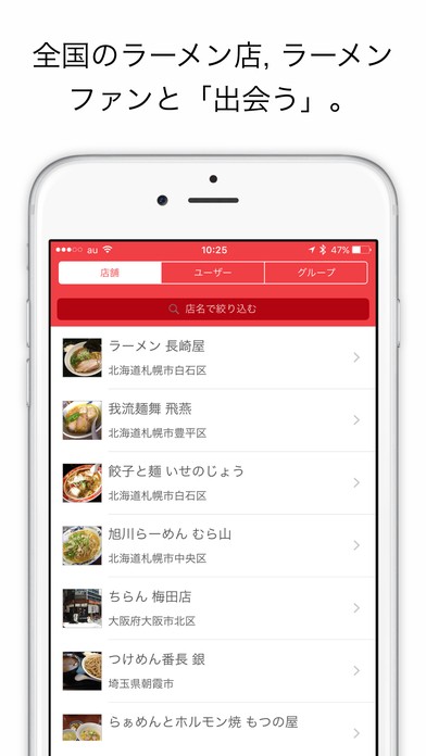 「出会う」で美味しいラーメン店を見つける。ラーメン好き仲間と交流する