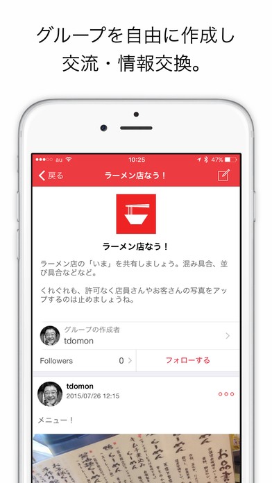 グループをフォローすることもできますよ。ラーメン好きなのは間違いないので気が合いそうだったら参加してみるのも良さそうですね!