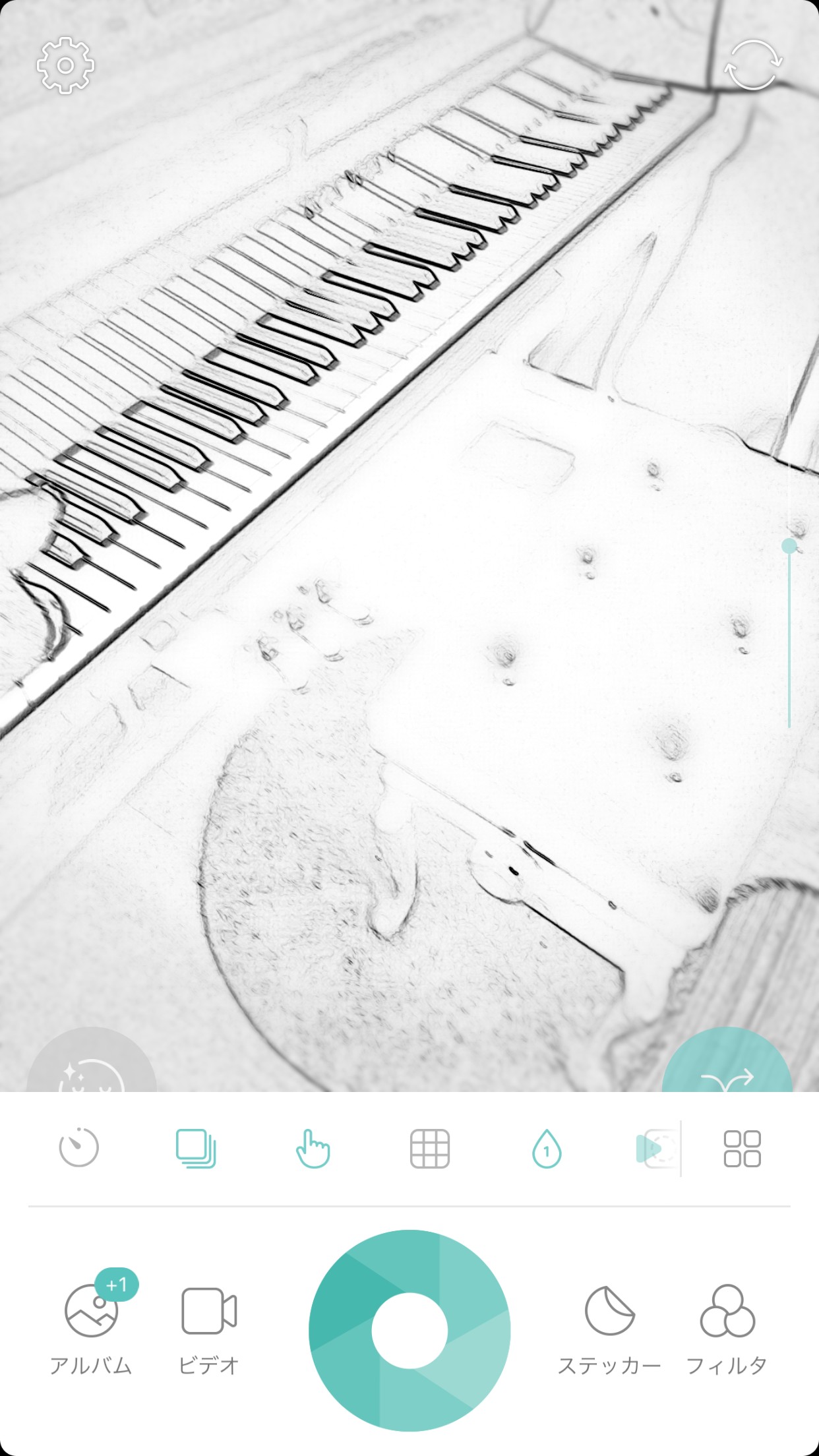 画面左下のアルバムアイコンをタップすることで、撮影済の画像に対して加工することができます。