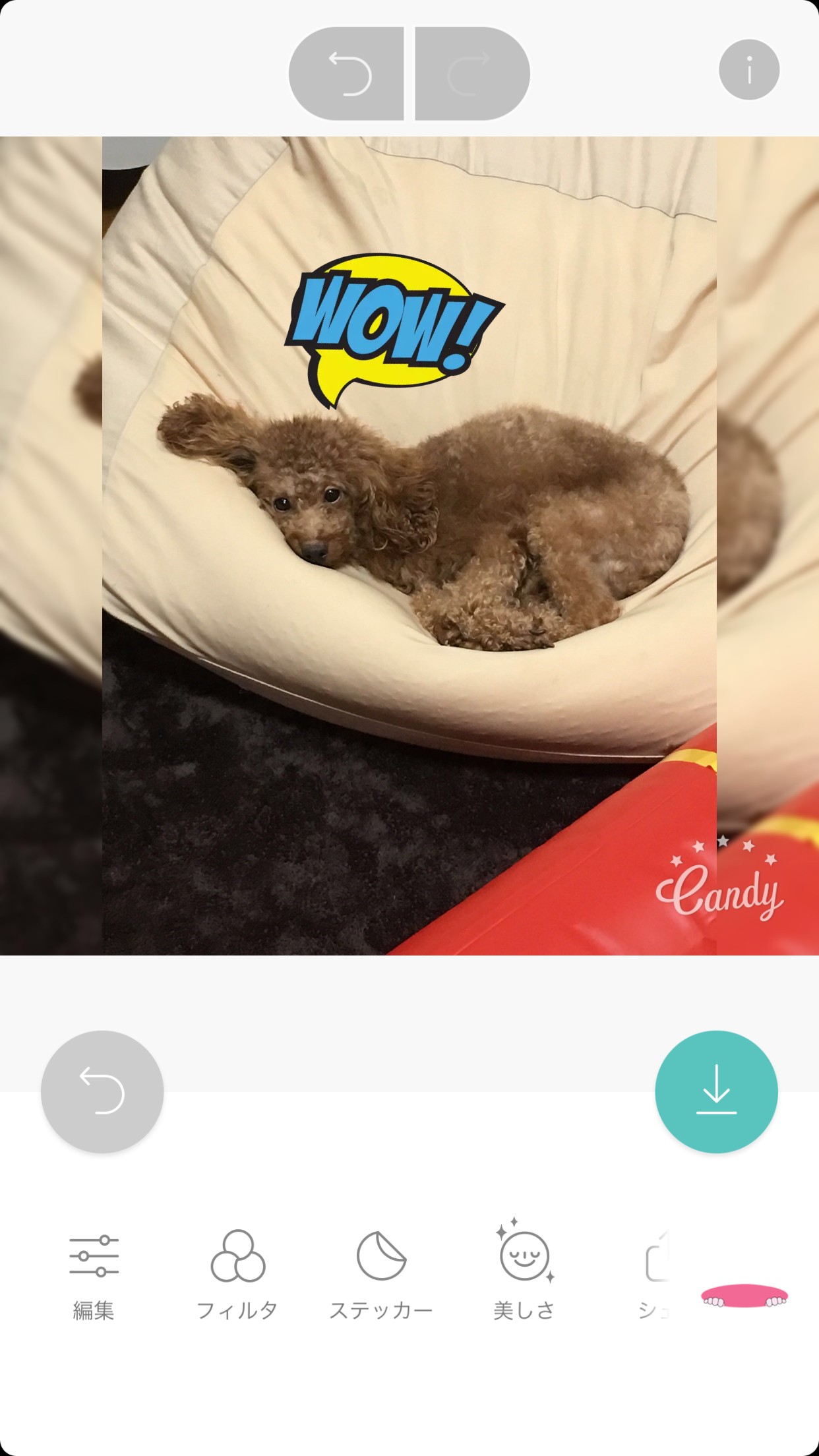 撮影時で紹介したステッカーを、撮影後の画像に対して適用させることができます。