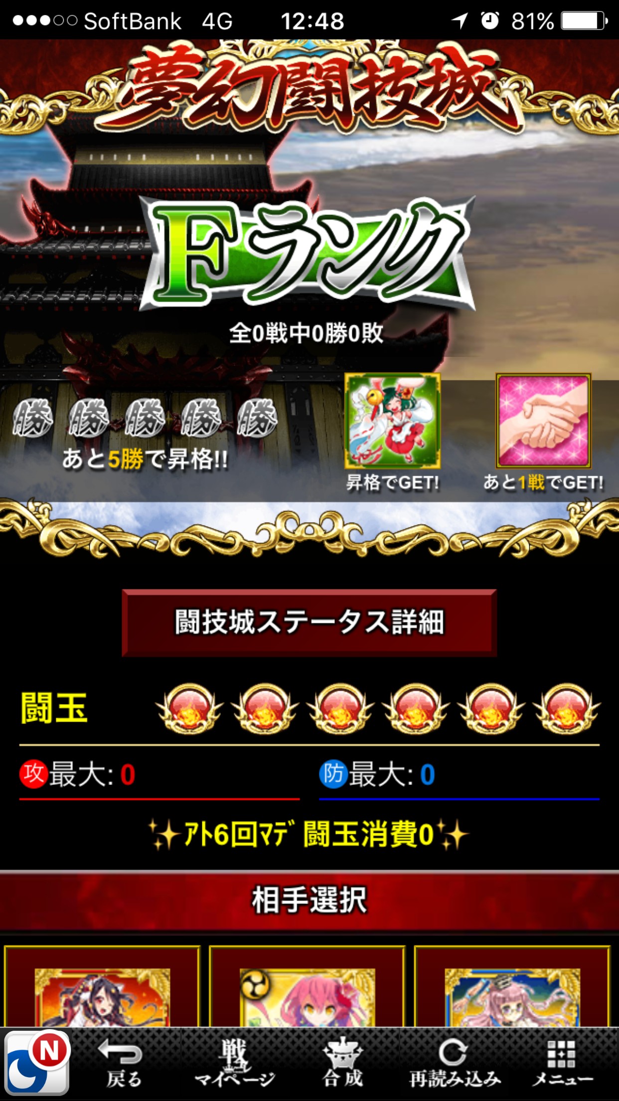 30分にひとつ回復する闘玉を消費して他ユーザーと戦います。