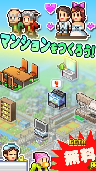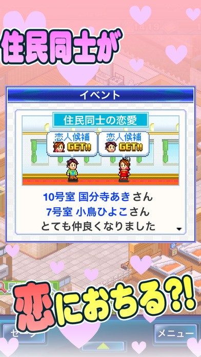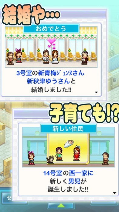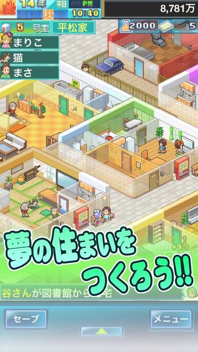 ただの賃貸マンション経営アプリかと思いきや、住人たちの暮らしぶりを覗いたりすることができたりとなかなか面白いアプリです。