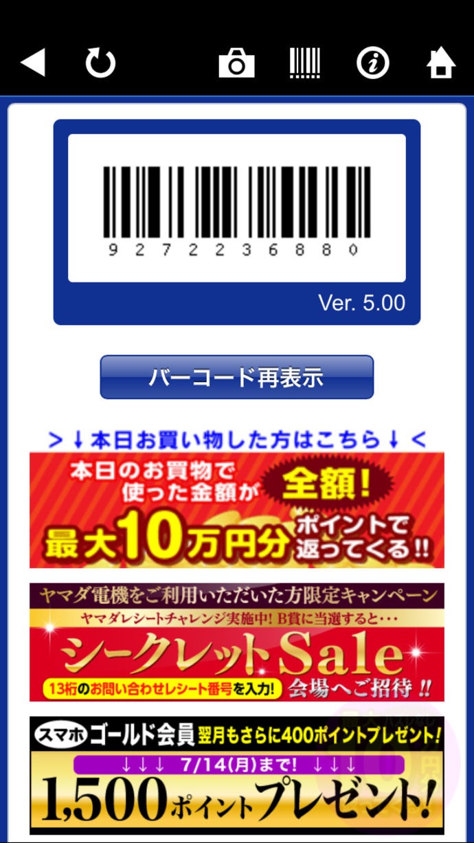 - ヤマダ電機で利用する時に必要な会員番号やポイントの有効期限やポイント数が簡単にチェックできる