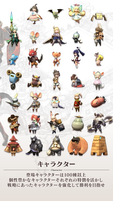 さまざまなキャラクターたちが持つそれぞれの個性や特徴を活かし、戦略にあったキャラクターを強化して勝利を目指しましょう。