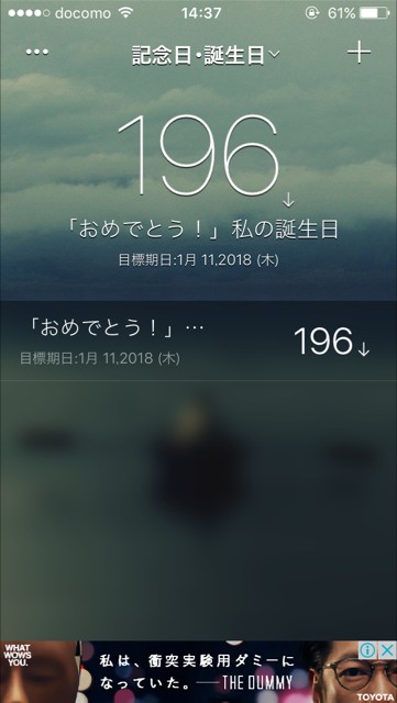 記念日やイベントまでの日数がカウントダウン表示されるので、すごく見やすいんですよ!