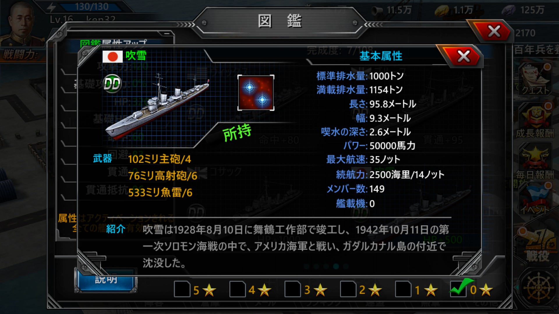 最初の艦船は特型駆逐艦ネームシップ、「雪級1番艦 吹雪」のみで戦うことになります
