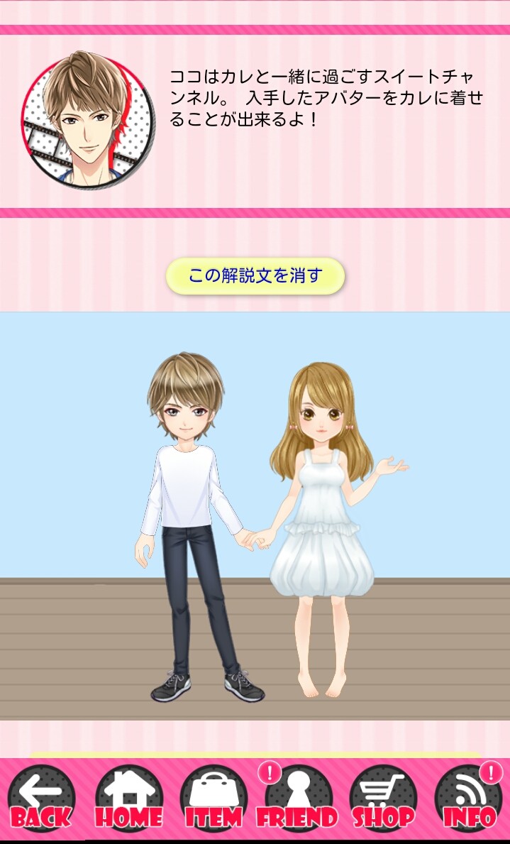 スイートチャンネルという機能では、お気に入りのカレと着せ替えを楽しむことができます。