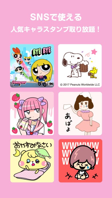 このアプリは先程書いたように、アメーバピグのアバターなどから自分だけのオリジナルスタンプを作れる他、人気のキャラクターをベースとして、いろいろカスタマイズすることができます。例えば「スヌーピー」や「エルモ」、「パワーパフガールズ」「Betty Boop」など、皆さん一度は目にしたことのあるような人気のキャラクターをベースに、可愛いスタンプを作れることができるのも最大の特徴と言えます。これからさきもどんどんそんな人気なキャラクターを増やしていく方針だそうで、とても期待できますよね! 今現在あるスタンプだけでも、人気なキャラクターを含め、本当にたくさんの種類のスタンプがあります。シンプルなものから、可愛いキャラクターまで揃っているので、まず飽きないと思いますよ!