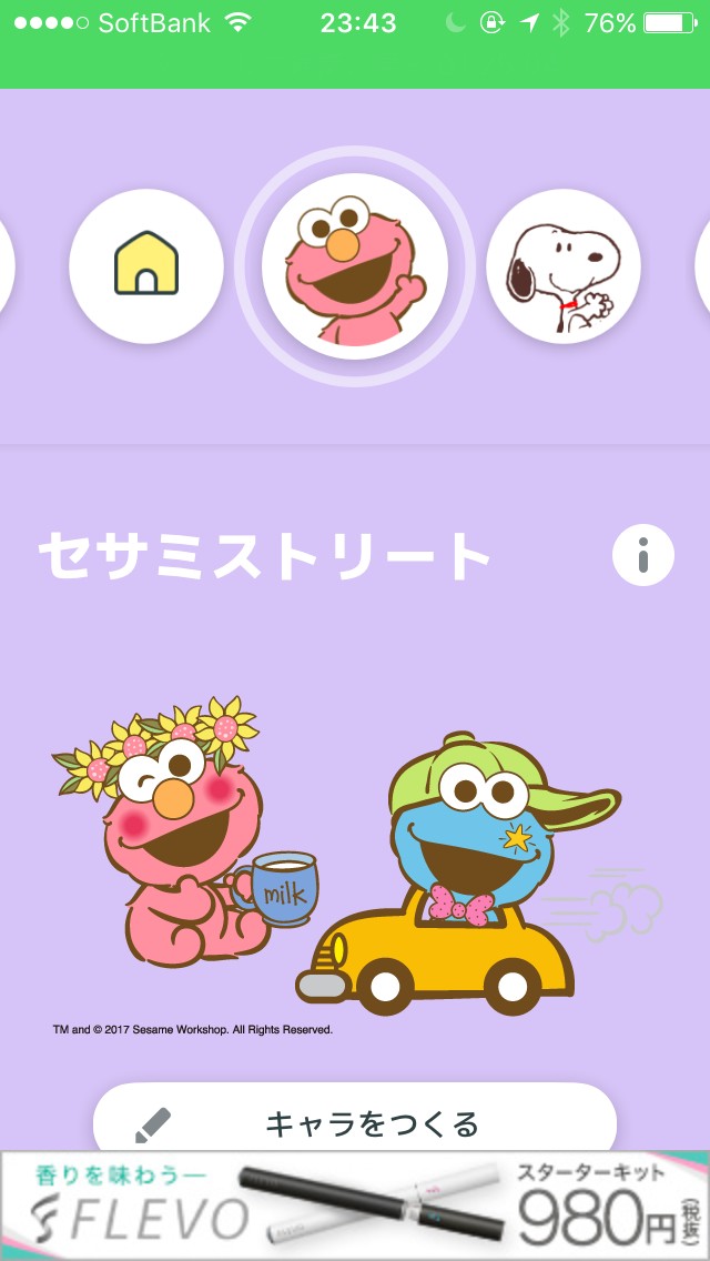 すると、自分が作ったキャラクター(今回はエルモ)が、もともとあるテンプレートに載った形のスタンプがいくつかでてきます。