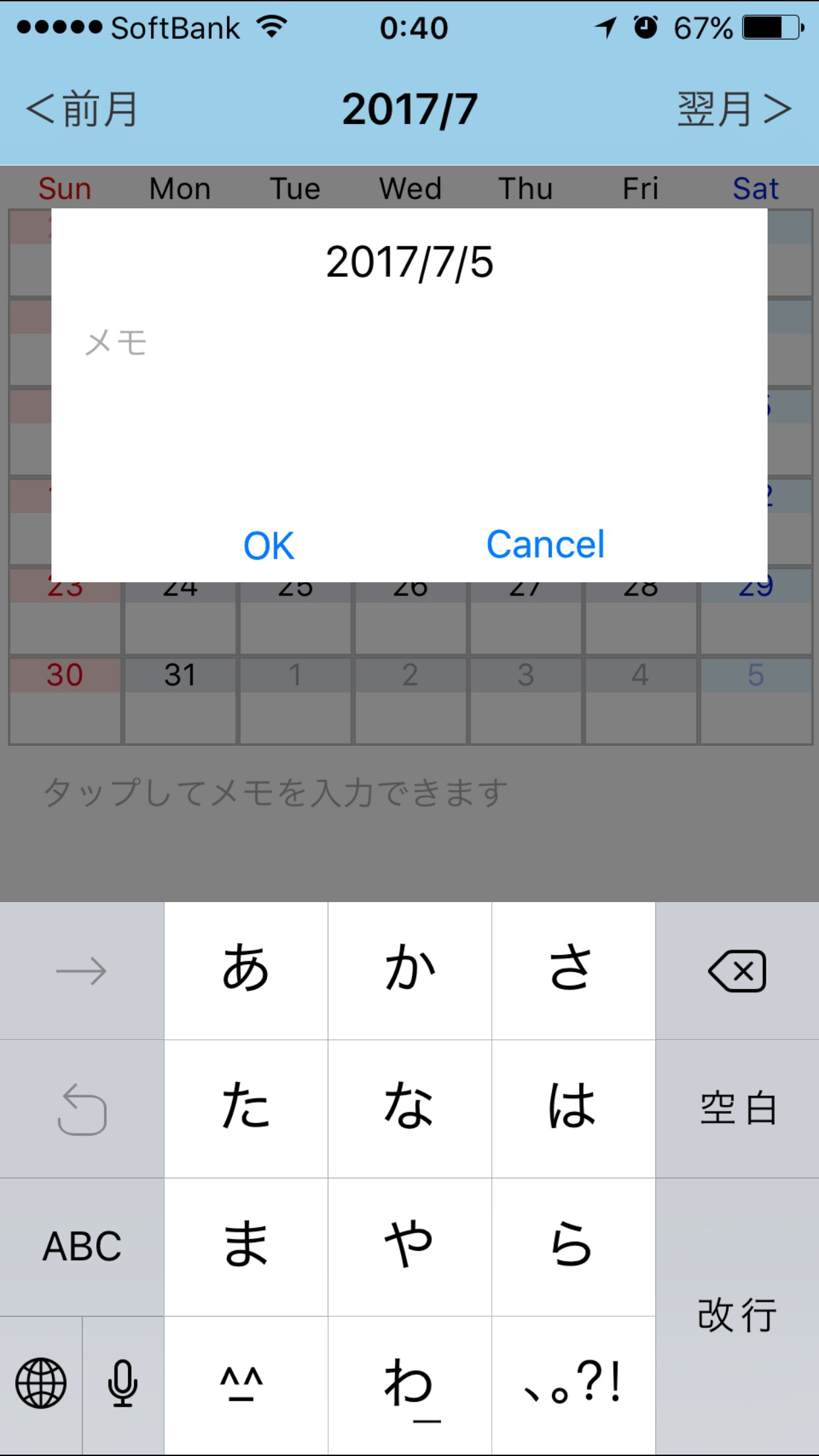 また、メモを入力した日をタップすれば、入力した文字がカレンダー下に表示されます。