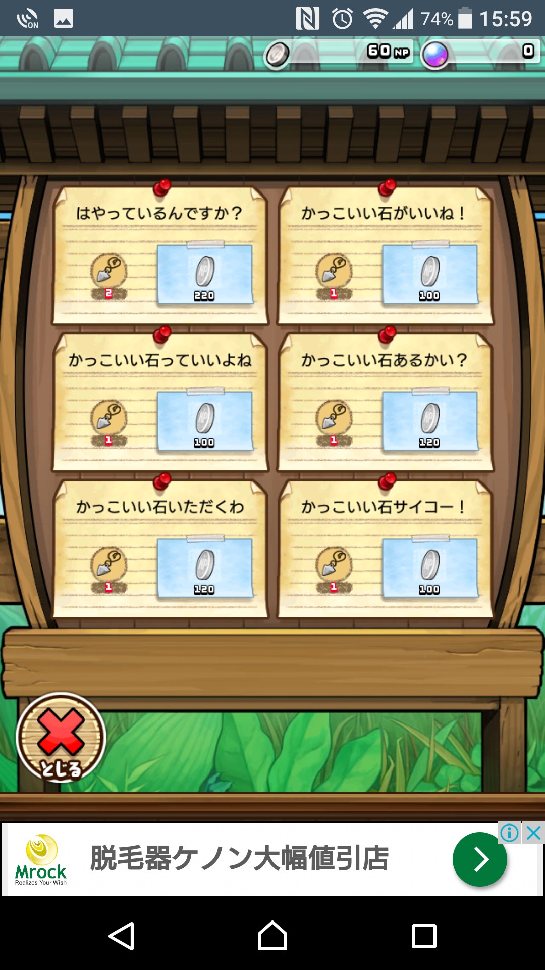 地上に置かれている掲示板には、他のなめこたちの欲しいものが書かれています。引き受ける依頼をタップして、納品してください。ここで注目したいのが、同じアイテムを欲しがっているなめこたちが報酬として用意しているNPは必ずしも同じではないということです。できるだけ高く買い取ってくれるなめこの依頼を受けましょう。