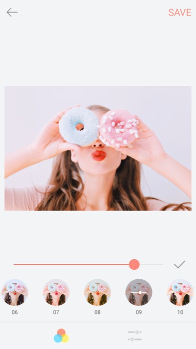 露出度や明るさ、シャープや陰などの10個の編集項目があるので、細かな調整であなた好みの、自分だけの写真ができちゃいますよ。