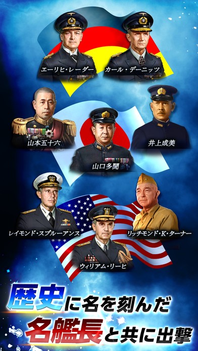 300種類以上の実在していた艦船や、アメリカ、日本、イギリス、ドイツといった国で名を馳せた海軍の名将も登場。