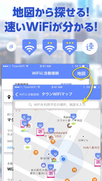そんなときにオススメなのが、WiFi自動接続アプリ『タウンWiFi』です!