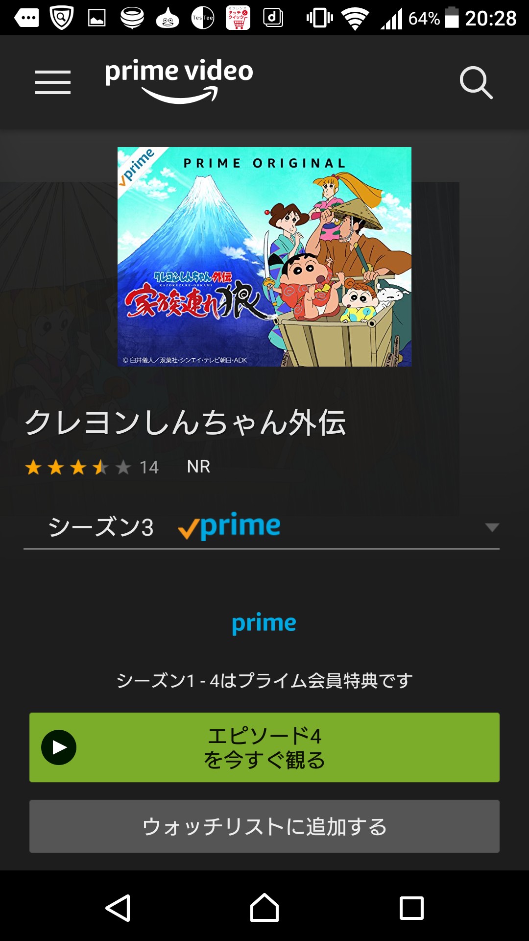 「Amazonプライム・ビデオ」では、映画だけでなくさまざまなアニメやドラマを楽しむこともできます。
