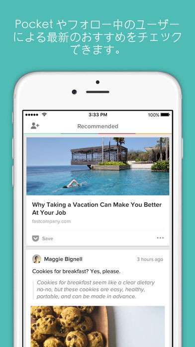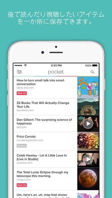 - 移動中、休憩中などに、Pocketに入れておいた情報をゆっくり閲覧する