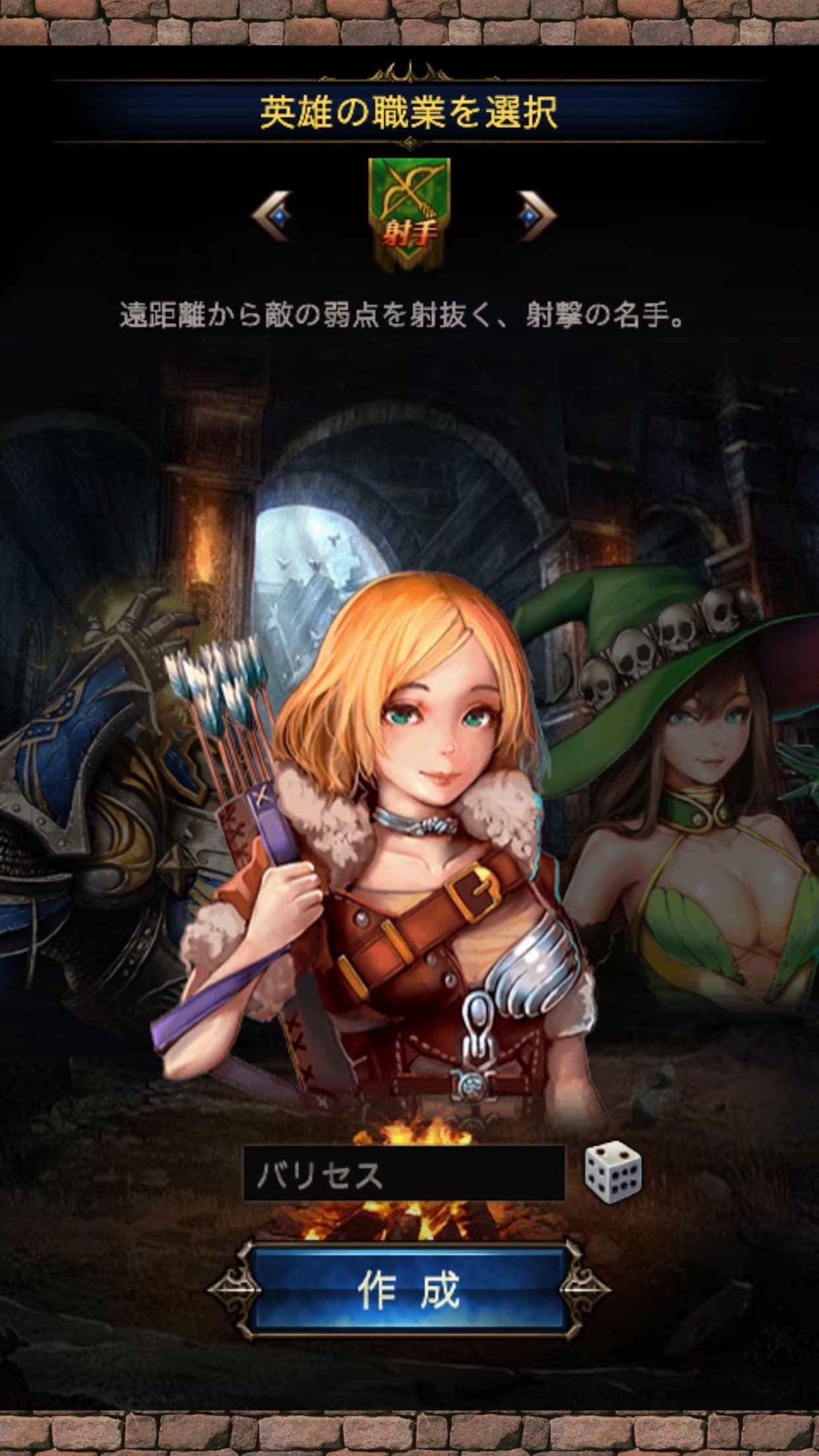 主人公のキャラクターは「狂戦士」・「魔女」・「射手」の3種類から選択が可能です。好きなキャラクターを選んだら冒険のスタート。