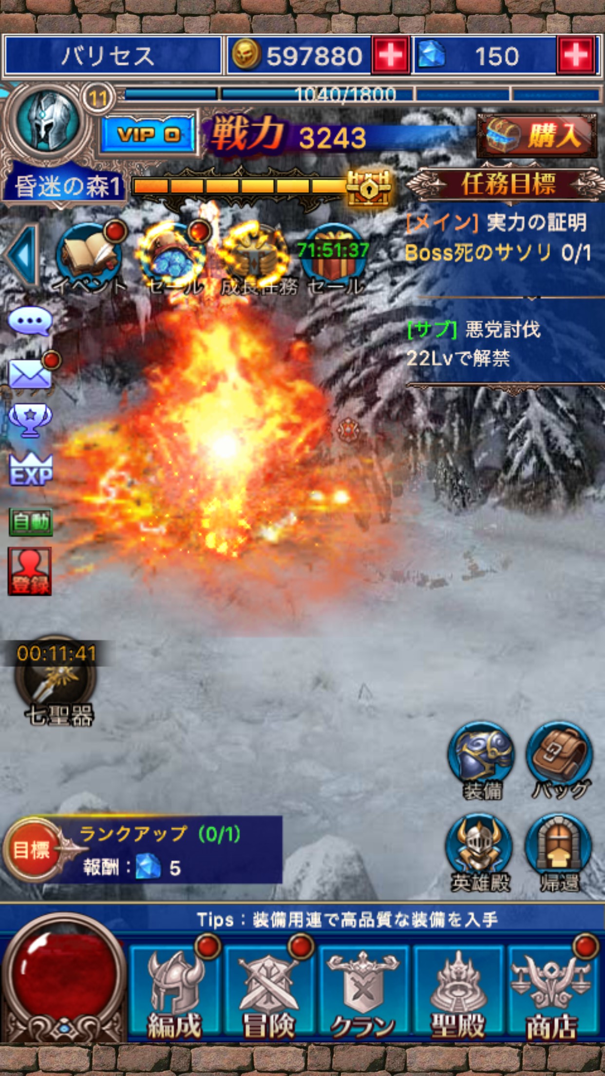 迫力バトル!ランキングインの放置型ロールプレイングゲーム「放置伝説」