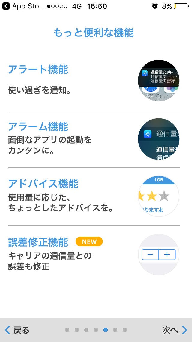 続いて、アプリを起動しなくても通信量をチェックできるというiphoneの使い方画面が表示されます。この設定により、通知センターを開くだけで使用量が分かるようになります。