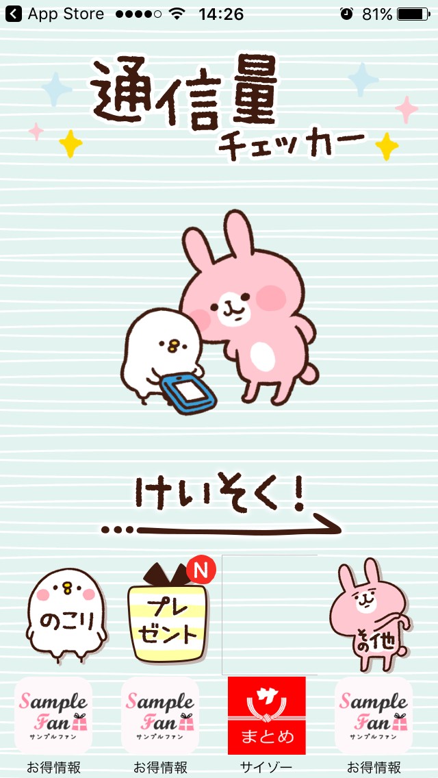 かわいいキャラの「カナヘイの通信量チェッカー」で通信量チェックを楽しく!
