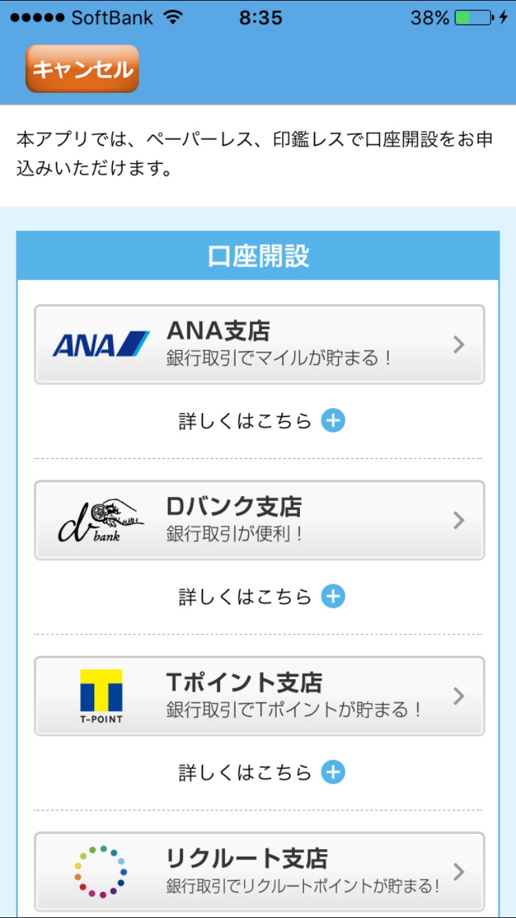 SurugabankAppではペーパーレス、印鑑無しで下記4種類のネット支店の口座開設することが可能です。
