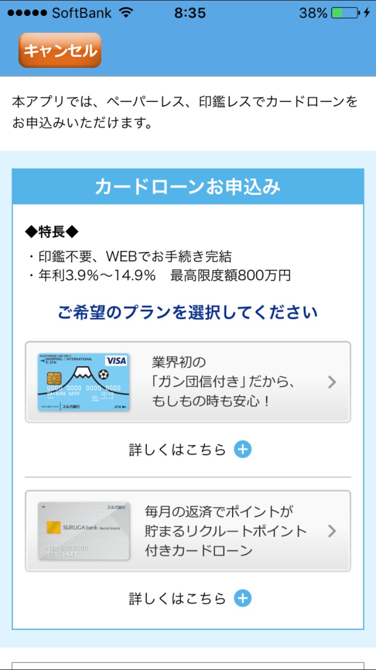 SurugabankAppではペーパーレス、印鑑無しで下記2種類のプランのカードローン申し込みが可能です。