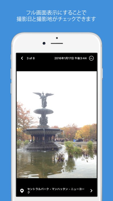 撮りためた写真が日付順に整理されるので、いつ、どこに行ったのかすぐにわかりますね。
