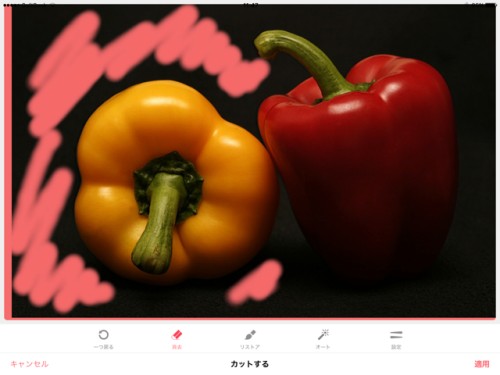 画像の輪郭をざっくりなぞって、「オート」タップ!ご覧下さい!さすが世界の「Bazaart 」ですね!これだけで簡単にフォルムを抽出できました!後は先ほどの「形」ツール(今回はスマッジを使用)細かいところを補正。完全に背景を消去することができました!