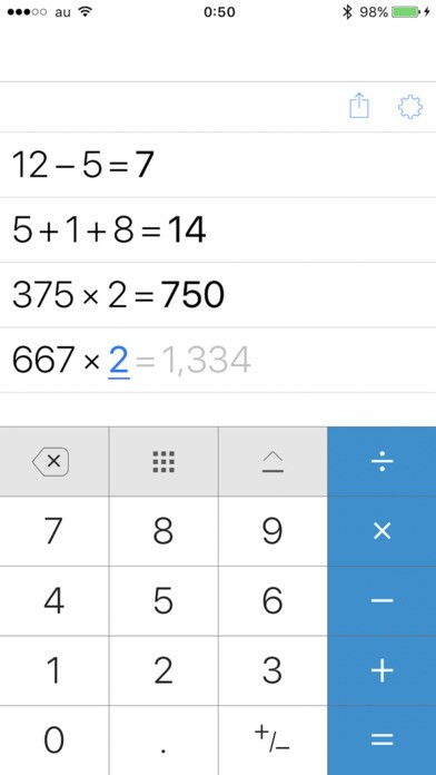 もうなんといっても「途中式が見える」というのがこの電卓アプリの最大の特徴と言えます。まずそもそもの話なのですが、スマホで電卓を使うとして、どうしてそのままのクオリティのものを作るのか、というのが前提にありますよね。スマホでない、日常で売られている電卓であれば文字盤に凹凸があって、打ちやすさで言えば、スマホのほうがいい!とはお世辞にもいえませんからね。ではどこで差を見出すか。このアプリを作った人は「途中式が見えるようにしよう」と考えたのですね。おそらく市販の電卓で、途中式が見えるようなものなんて売られていないし、そもそも実現不可能ですよね。学校でもよく数学の時間では「ちゃんと式を書きなさい」と言われたのを思い出しますが、あるものを計算する上で式というのは非常に重要で、式を書かないとミスが起きやすいし、起きたとしても気づきにくいですよね。それがなくなるというのがこのアプリの最大の特徴です!