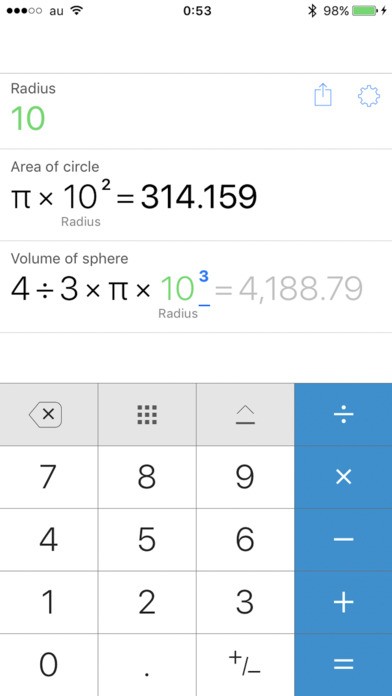 「途中式が見える」という他にも、「その途中式を修正できる」ということや、私としては「一文字ずつ消すことができる」という点に驚きを感じました。他にも単位として「x^2」「x^3」や、「sin」「cos」、「π」「税計算」など、「超多機能電卓」の部類に入ります。このレベルの電卓を市販で買うと結構値が張りますよね。他にも「!」など、これは「階乗」と言われるやつで、電卓で計算なんてもっぱら出来ない扱いのものです。さらに( )の計算もできるので、もうなにからなにまで多機能すぎる、というのが率直な印象です。このアプリがあれば、数学の授業はもちろん、大工などに使っている方もお見受け出来ました。本当にたくさんの使い方ができると思いますね。