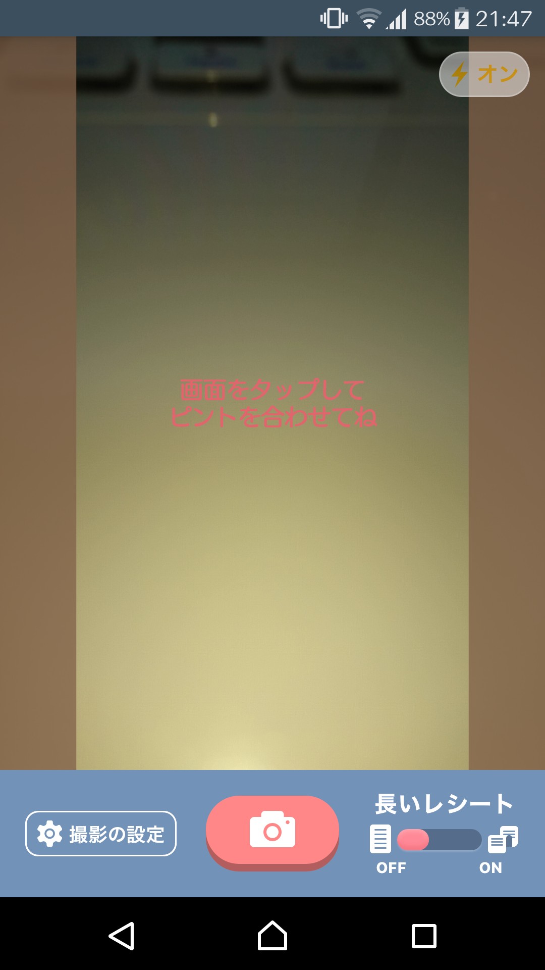 レシートをアプリで撮影すると、そのレシートの内容を自動で読み込んでデータ化してくれます。レシート撮影で読み込める情報は「商品項目」「金額」「お店の情報」の3つです。画面をタップすると自動的にピントが合わさって撮影してくれるので、カメラ操作が苦手な方でもとても手軽に済ませられます。たくさんお買い物をしてレシートが長くなってしまっても、モードを切り替えて撮影すればきちんと全て読み込んでくれます。また手入力で商品や金額を打ち込むことも可能なので、レシートをなくしてしまったり、万一読み込みができなかったりしてもしっかり管理できます。