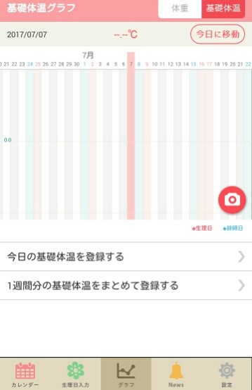 基礎体温は入力するとグラフ画面に反映されますので、自分でグラフを引かなくてもラクラク。