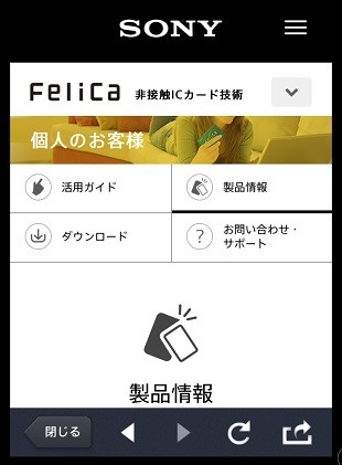 パソリ(RC-S390)の詳細情報画面の「活用ガイド」をタップすると、次の画面が表示されます。