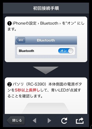説明初期画面の②「初回の接続手順画面」をタップすると、次の画面が表示されます。
