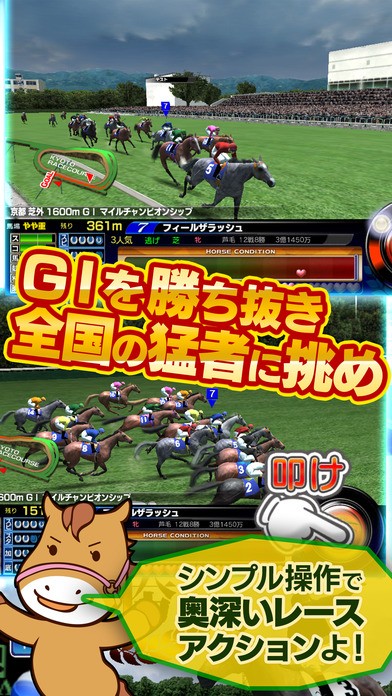 ダービーオーナーズクラブは競走馬のオーナーとなり愛馬に調教を施すなど育成を行い、レースを戦う競走馬育成レースシュミレーションゲームです。同じような競馬ゲームでは競走馬の繁殖、調教を行い、メンコや鞍といったアイテムの装備や騎手の選定をしてレースは観戦だけというのが一般的ですが、このゲームでは自分で調教してレースに出走させるだけでなく、レース中もスタートダッシュを決めて、より良いコース取りをしたり、ライバルや有力馬をマークしたり、馬込みに入れたりするなど、自分で馬に鞭を入れて追ったり、手綱を引いて抑えたりといったプレーヤーの騎手としての手腕もレース結果に影響するのが特徴的です。ゲームスタート当初はチュートリアル形式でゲームを覚えていきますので、初心者でもすんなりとゲームを始めるとができます。また奥深さもあるので、ゲーム長くプレイしている人でも楽しむことができてプレイヤーを飽きさせません。