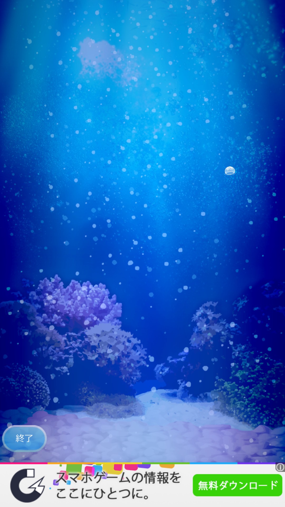 背景も海の中を泳いでいるような雰囲気になっているので、水族館でクラゲを眺めている感覚になれるシミュレーションアプリです。