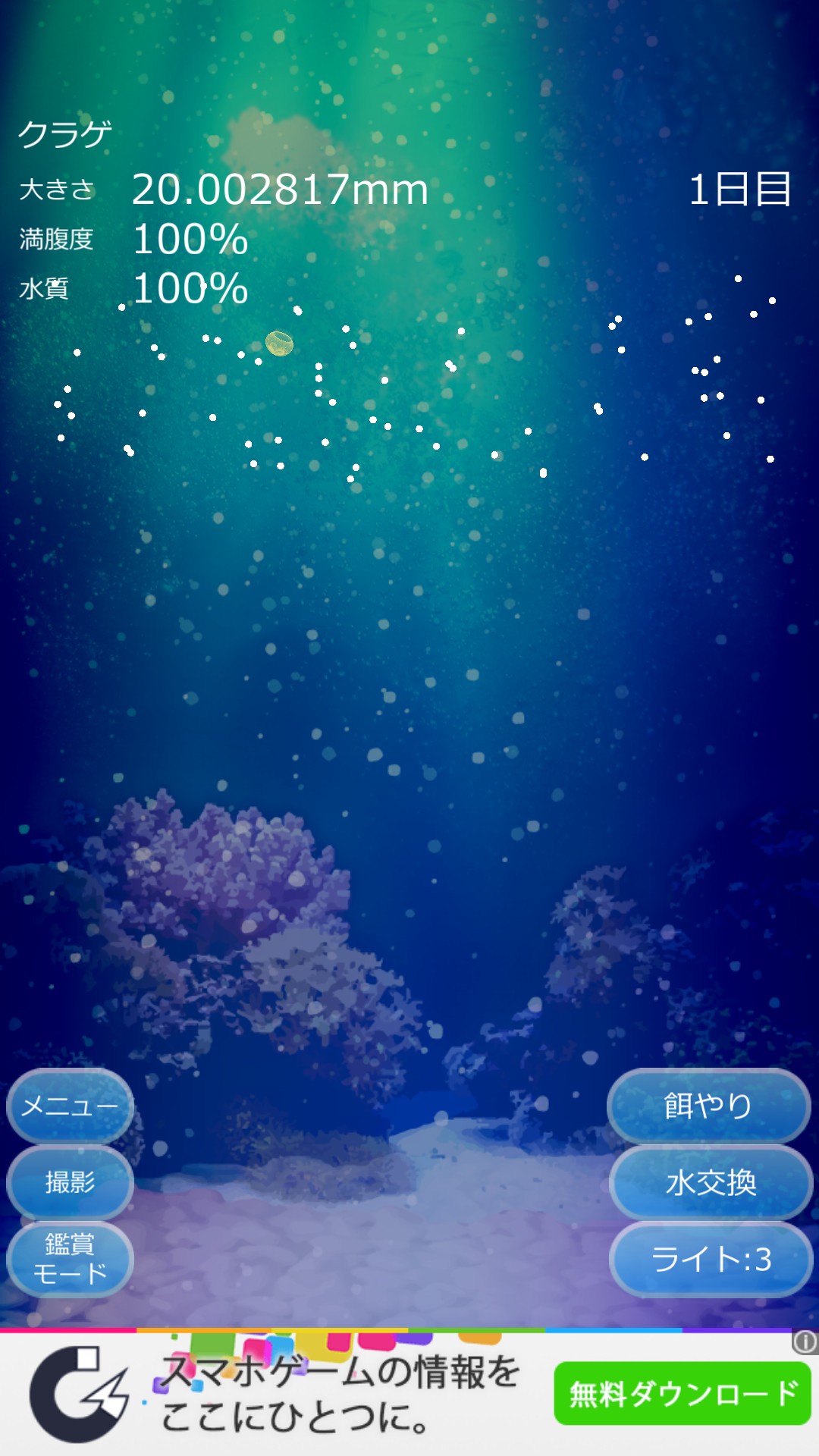 その2つのお世話だけで、クラゲが少しずつ成長していきます。