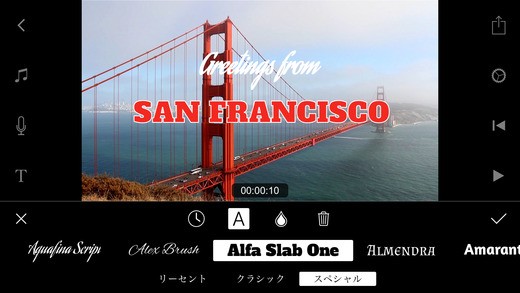テキストも加えることができ、186種類のフォント、8種類のアニメーション、テキストの配置・サイズ・向きの変更が可能。もちろん、テキストの表示