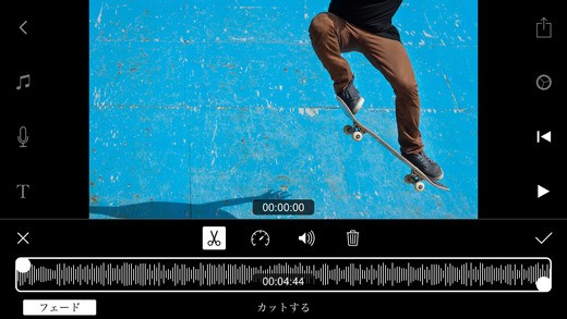 音量調節や、スーパースローモーション・ファストモーションなど、他の動画編集アプリではなかなか使えない機能まで搭載されています。
