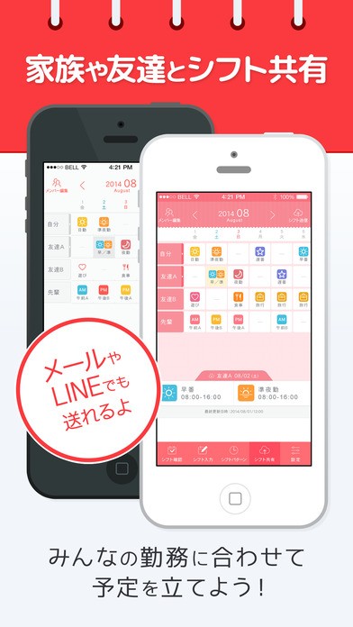 また、友達などのシフトを共有できる便利な機能も搭載。