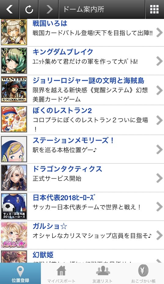 そんなゲーム(コロプラではドームと呼びますが)が一同に集まり、そしてその仲間が集うのがコロプラの世界です。